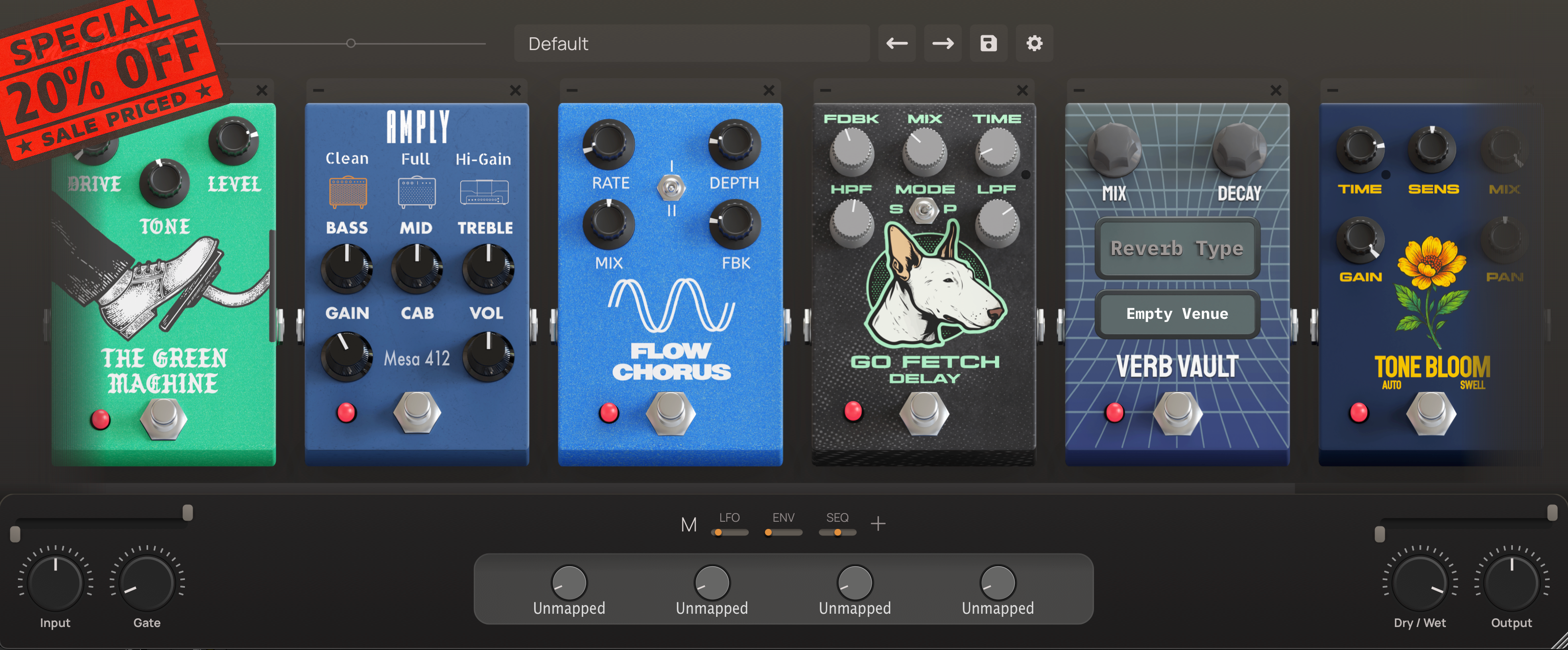Your ultimate guitar tone suite is here. 12 effects, 3 amp sims, 10 cabs and 100+ presets. Ready for your DAW.
